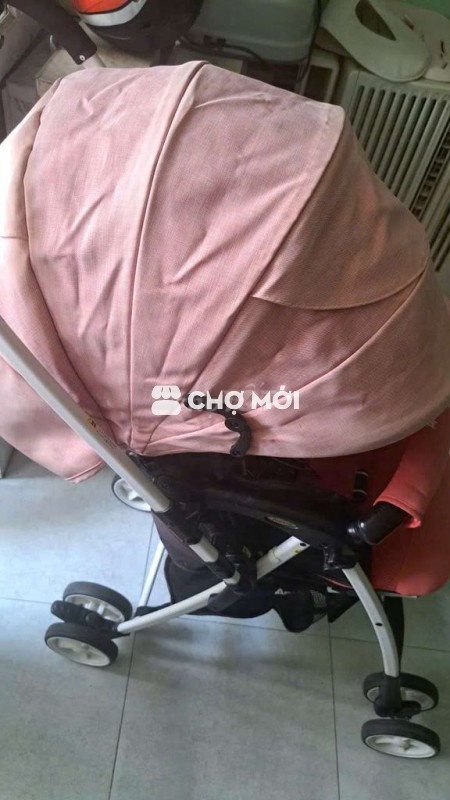Xe đẩy em bé Aprica màu hồng, thiết kế gọn nhẹ, dễ dàng gấp gọn.