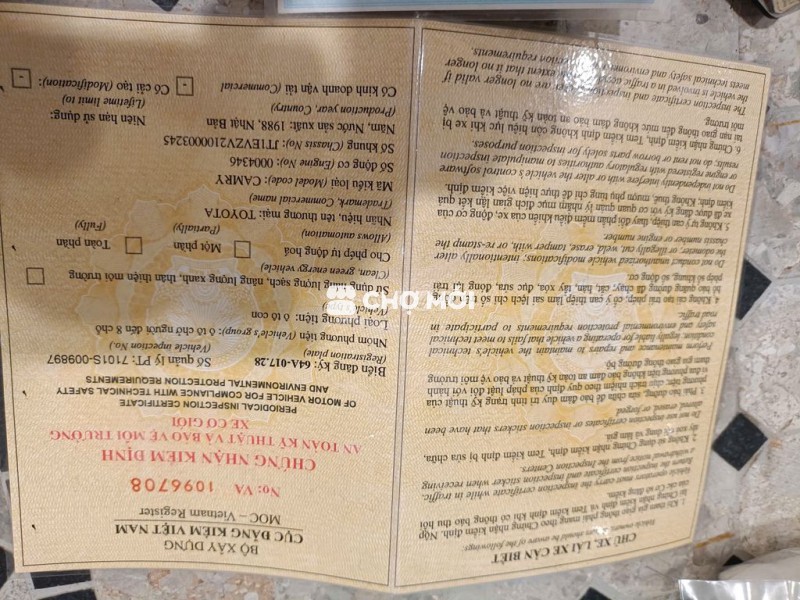 Gia đình cần bán xe Toyota Camry 1988 có cửa sổ trời, màu xanh đen, xe 5 chỗ, động cơ xăng, số sàn.