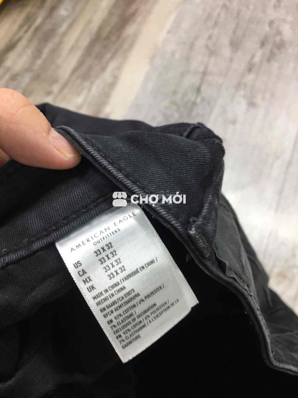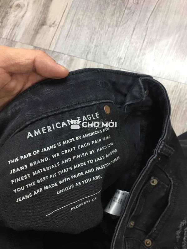 Đen x khói Mới tinh American eagle. Rách bụi hãng Sz 33 fit 34 Eo. 88.90. Co dãn Dài 105 Ống 17 &. 300