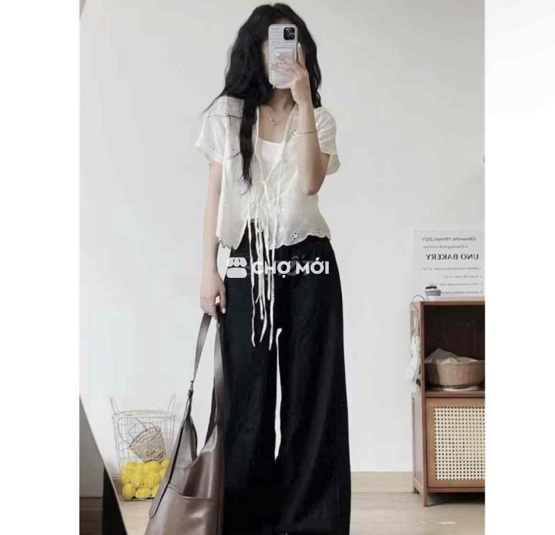 Áo babydoll màu kem kèm áo 2 dây trong màu trắng NEW