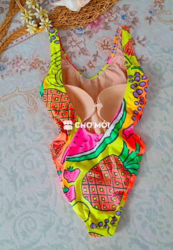 Áo bơi nữ xinh màu Hawai trái cây Vải thun cotton có lót Size M. V1 75-83 cm V3: 85-93 cm
