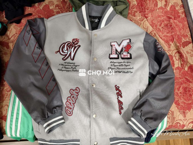Áo varsity Off White x A.C Milan. Hàng like auth. Mới. Tay phối da. Sz M tương đương 58-65kg Nam nữ mặc đều đẹp Giá 550k