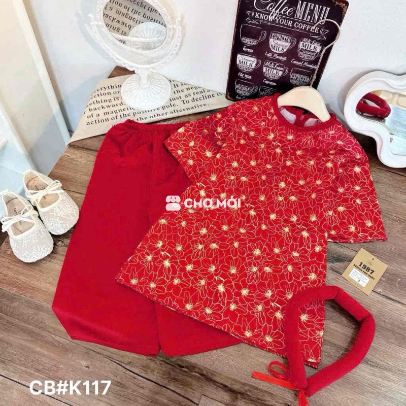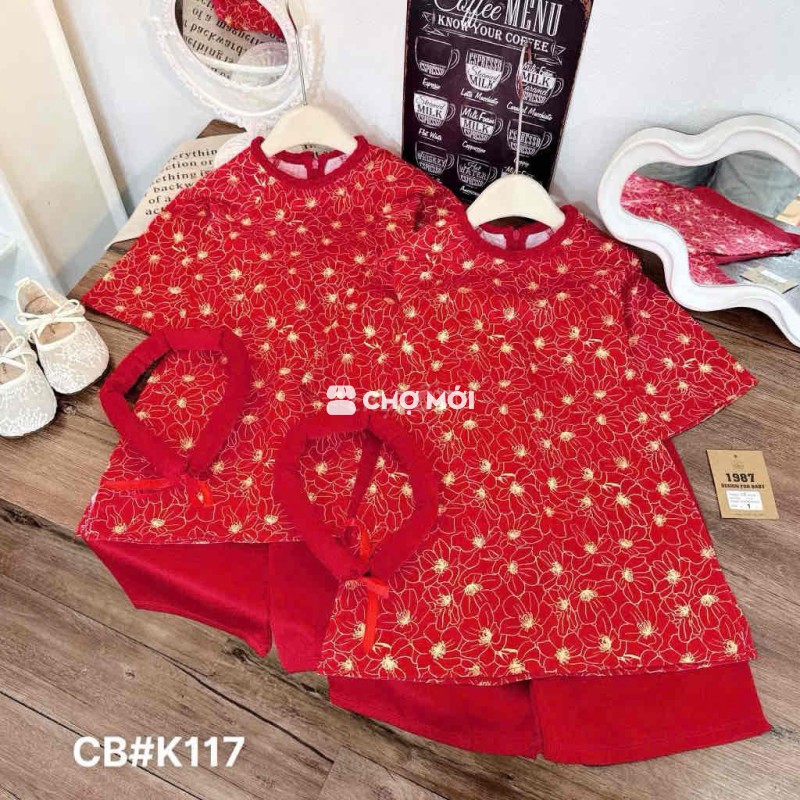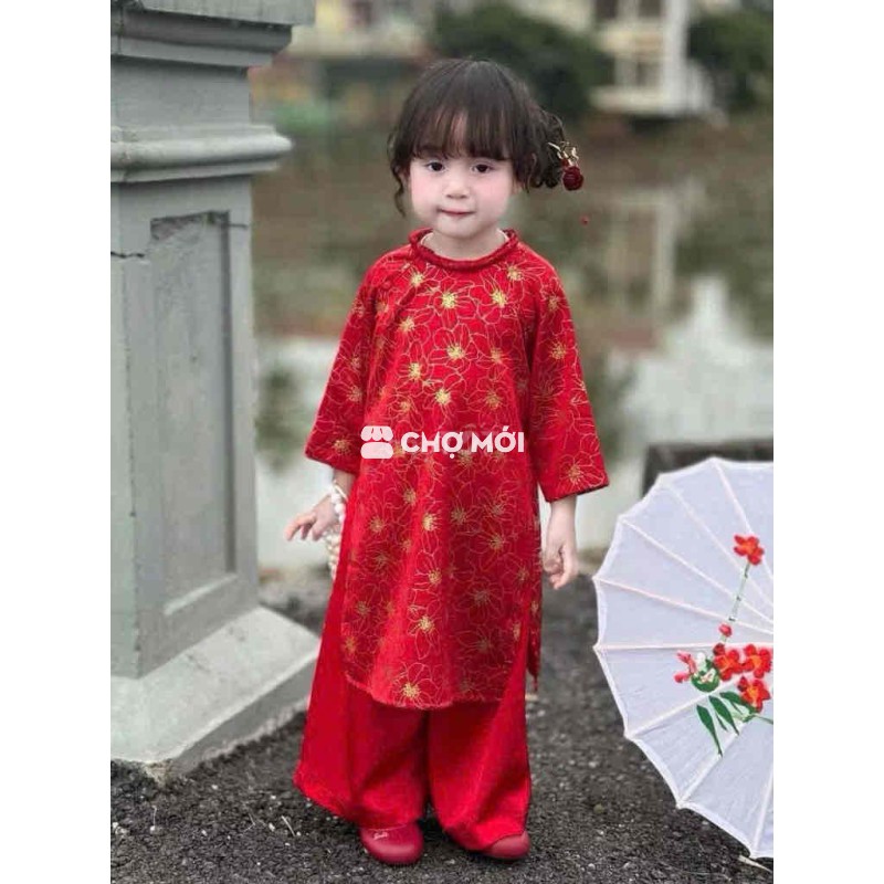 Áo dài bé gái chất lụa mềm mại, màu đỏ tươi tắn. - Đủ size cho bé từ 10 đến 30kg. - Kèm bờm tóc xinh xắn.