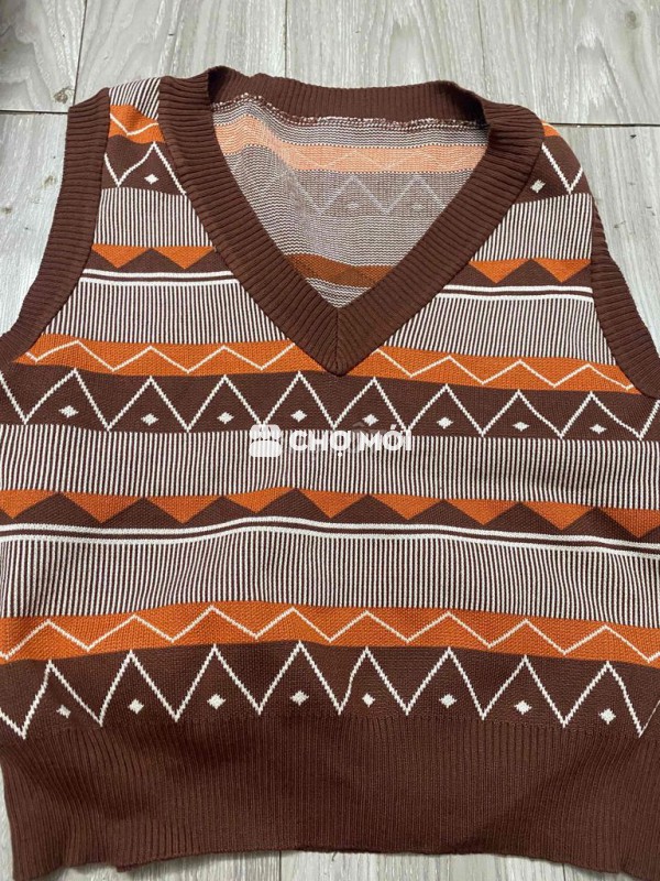 Áo gile len thổ cẩm cổ V dáng rộng phong cách vintage Chưa mặc lần nào 35k