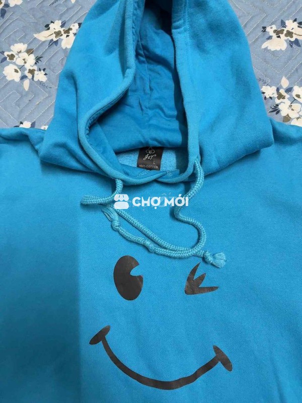 Áo hoodie xanh dương chất cotton, unisex. - Độ mới cao, chất vải đẹp. - Phù hợp cho người từ 55-65kg. - Giá 55 nghìn.