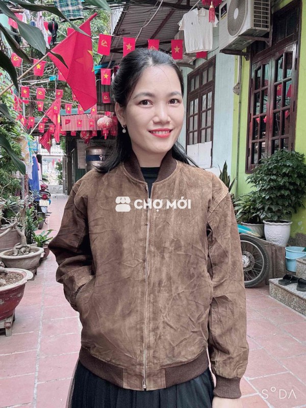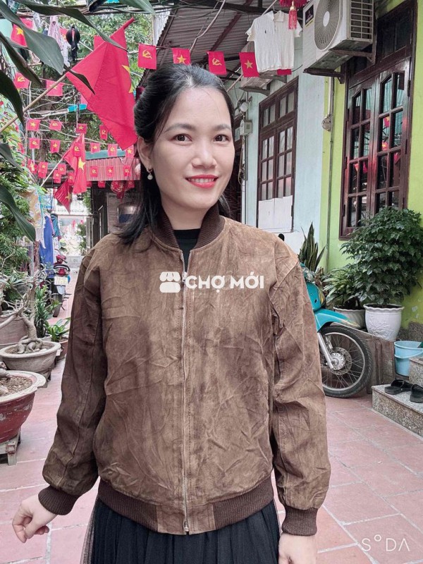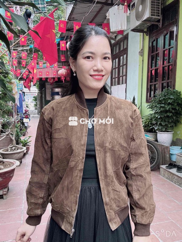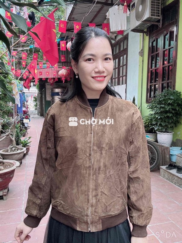 - Thiết kế dáng BOMBER da lộn hiếm với màu nâu sang cực, khoá kép xịn xò dập hiệu