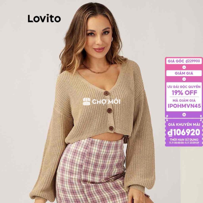 Áo khoác cardigan Lovito len nữ croptop