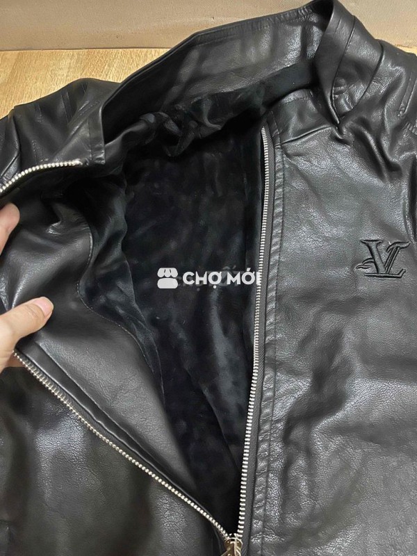 Áo khoác da nam da bò lót lông đen