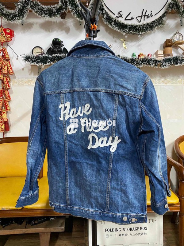 Áo khoác jean nữ màu xanh, chất liệu jean bền đẹp. - sz L - Thiết kế thêu chữ cá tính. - Dễ phối đồ, phù hợp nhiều phong cách. - Giúp bạn nổi bật hơn.