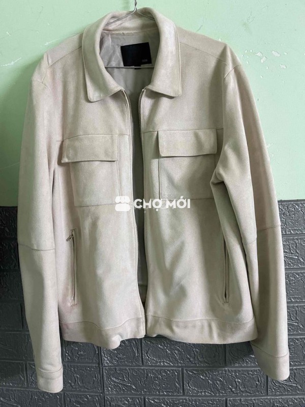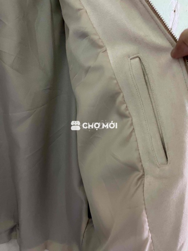 Khoác korea màu kem da lộn fom đứng. 1m6 1m7 55k 65k mặc đẹp. Áo dày hơi nặng