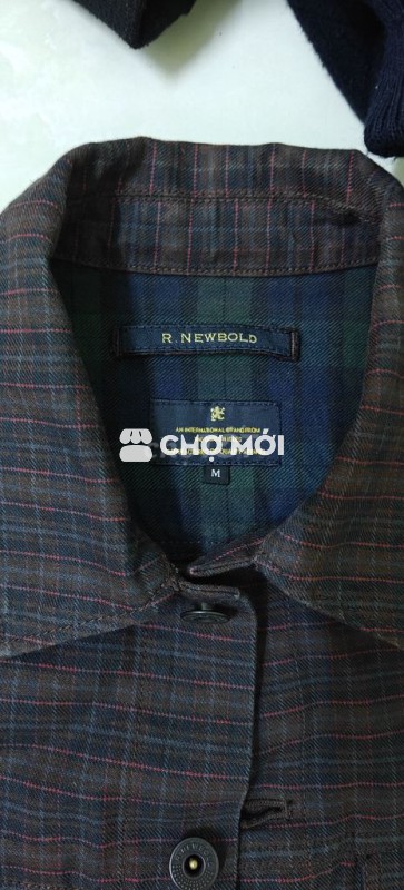Áo khoác denim R.NEWBOLD nam, màu nâu kẻ, size M. - Chất liệu denim bền đẹp. - Phù hợp cho người từ 48-55kg.
