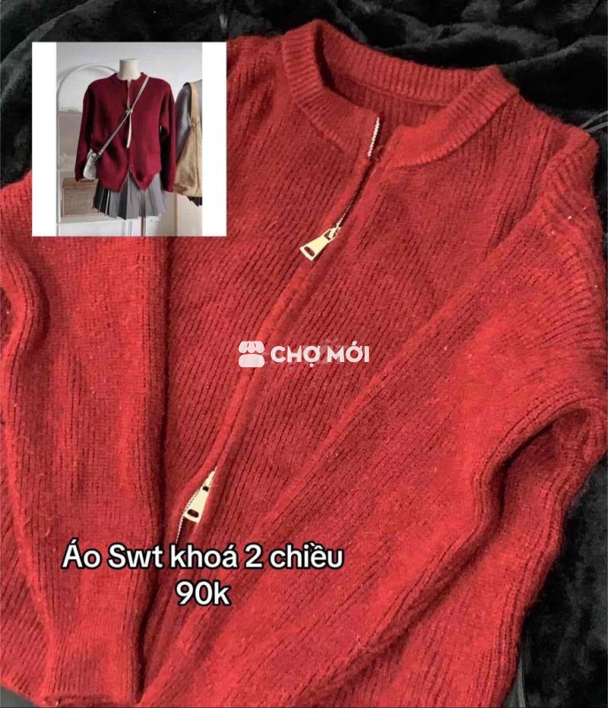 Áo len đỏ khoá kéo hai chiều thời trang hợp Tết