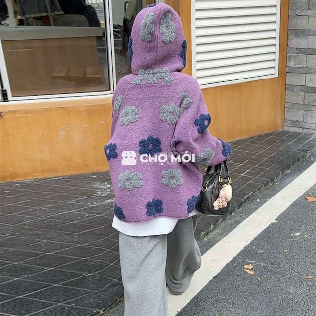 Áo len oversize tím hoa 3D – phong cách Hàn – mặc siêu xinh