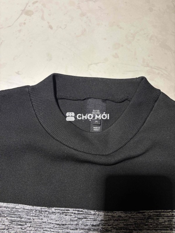 Áo phông River Island size M màu đen, chất liệu vải dệt kim từ Thổ Nhĩ Kỳ. - Áo chính hãng, mặc vài lần như mới, chất hơi dày mặc thu đông. - Phom nhỏ 64-68kg. - Giá 350 nghìn. Gdtt Long Biên hoặc Trương Định. Ship cod có cọc.