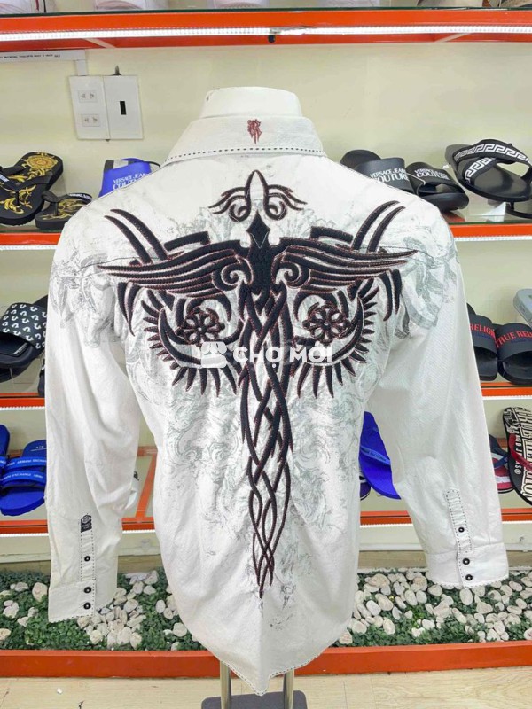 Áo sơ mi nam màu trắng, chất liệu vải mềm mại, thoáng mát. - Thiết kế thêu họa tiết tinh tế, lịch sự. - Phù hợp đi làm, đi chơi, dễ phối đồ.