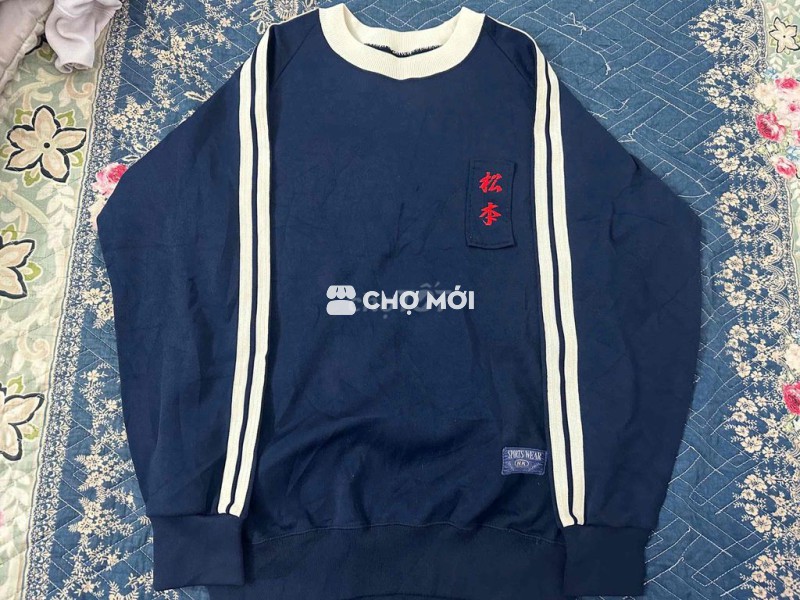 SPORTS WEAR M.K – Japan 🇯🇵 Áo sweater xanh navy Form thể thao, sọc tay nổi bật Thêu chữ Nhật + patch zin Chất dày, mặc ấm