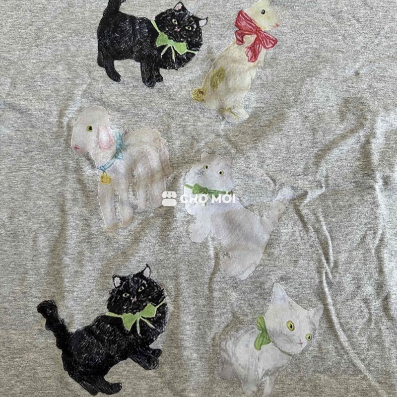 áo thun xám hoạ tiết mèo size L dưới 70kg mặc ok nha, đã mặc 1-2 lần, còn mới 90%