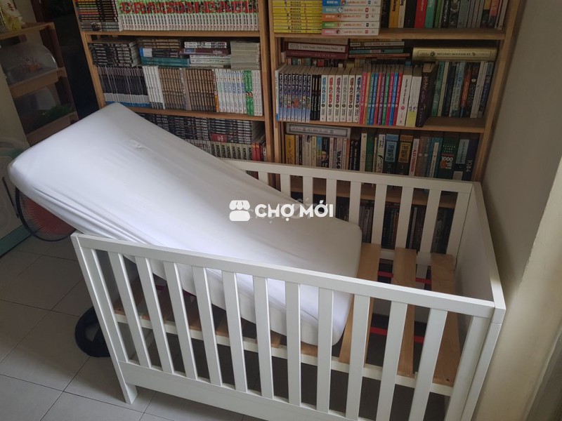 Cũi em bé màu trắng, thiết kế đơn giản, chắc chắn