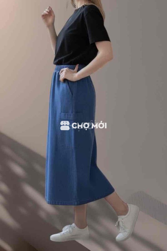 Chân váy jean có túi năng động Eo chun 40-55kg
