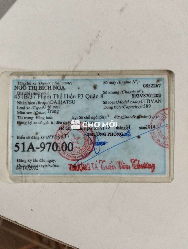 Xe Daihatsu Citivan S92LV2 màu trắng, sản xuất 2002. - Xe 6 chỗ, phù hợp gia đình hoặc chở hàng nhẹ. - Động cơ xăng, xuất xứ Việt Nam. - Xe còn hoạt động tốt, sẵn sàng sử dụng. Liên hệ ***