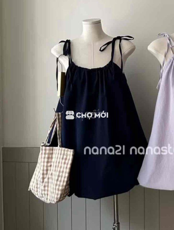 Đầm babydoll xanh navy dây rút mặc được 2 kiểu NEW