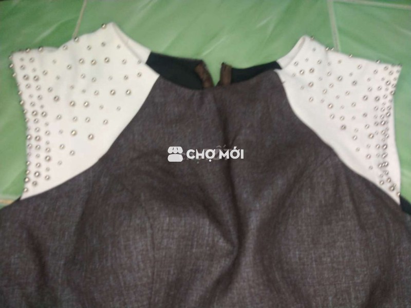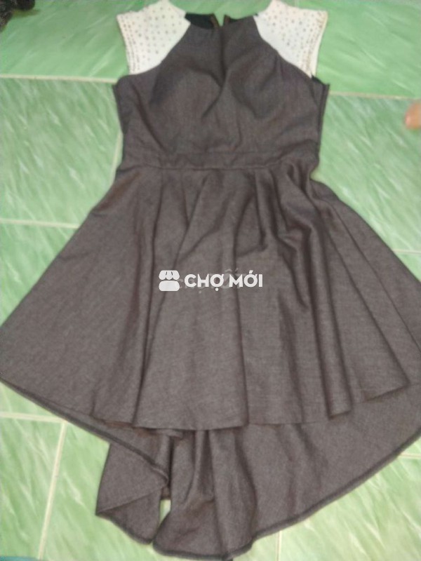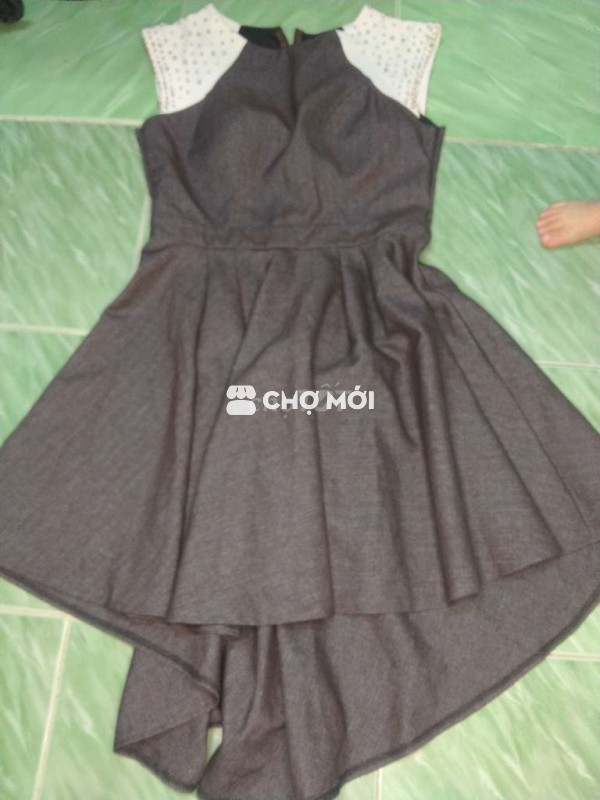 Đầm dự tiệc màu xám, chất liệu vải mềm mại, thiết kế sang trọng.