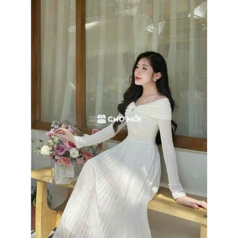 Đầm nữ dài tay màu trắng, chất liệu vải mềm mại, kiểu dáng trơn đơn giản. - Thiết kế thanh lịch, dễ phối đồ. - Phù hợp nhiều dịp, từ đi làm đến đi chơi. - Mặc đúng 1 lần đi đám cưới