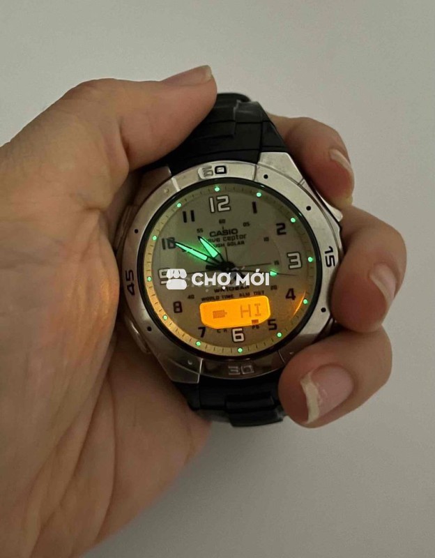 Casio Wave Ceptor Solar WVA-470 • Size 43, chạy giờ kim và điện từ, mặt dạ quang, full chức năng… • Dây khoá nguyên zin, pin năng lượng khoẻ Giá: 280k