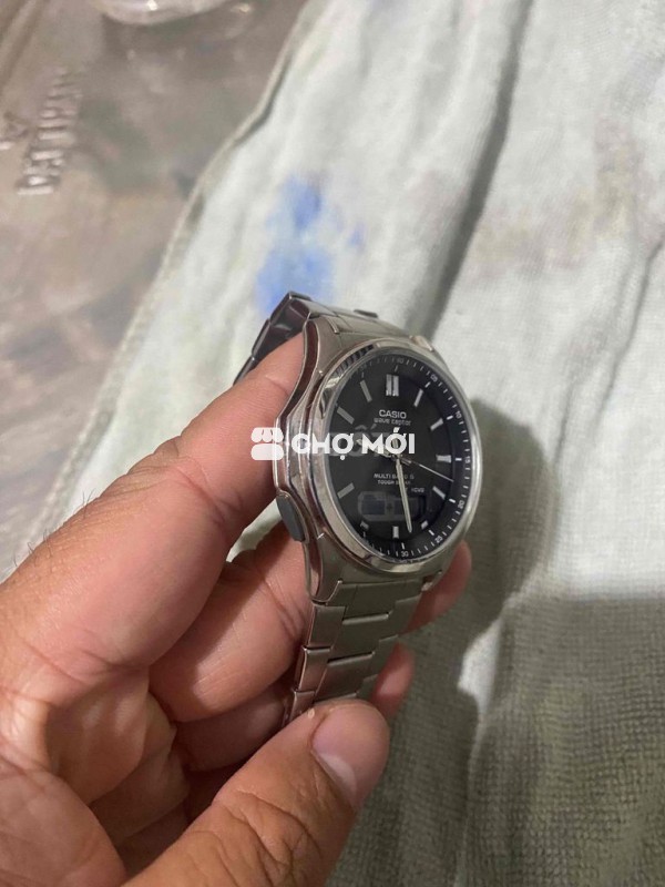 Đồng hồ Casio Wave Ceptor màu bạc, thiết kế nam tính, mạnh mẽ.