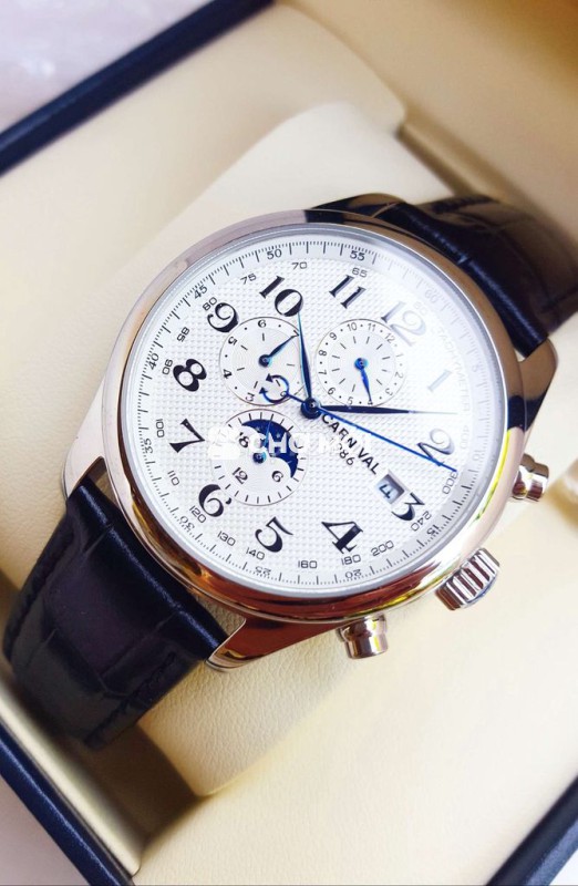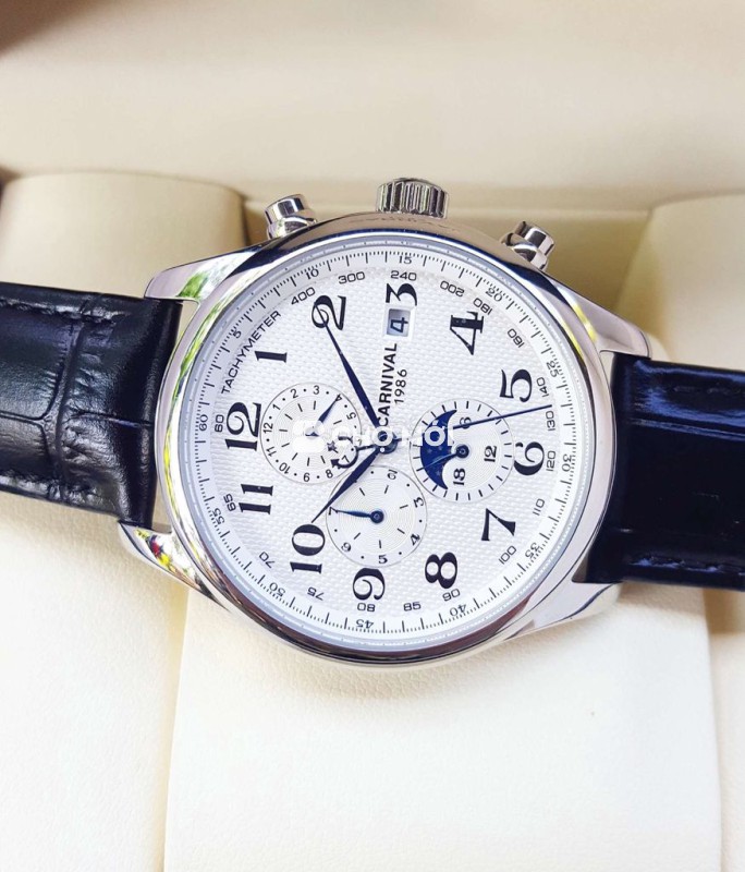 - Phiên bản Tripple Calender nổi tiếng. Chạy full 6 kim gồm lịch ngày, lịch thứ, lịch tháng và lịch trăng sao quá đẳng cấp. Định vị ngày và đêm. Ban ngày hiển thị mặt trời. Ban đêm hiển thị mặt trăng và các vì sao