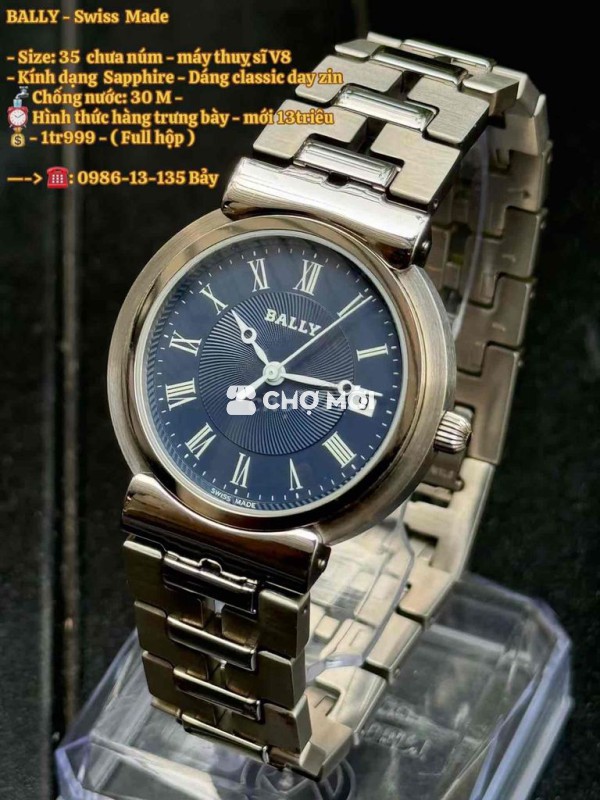 BALLY - Swiss Made - Size: 35 chưa núm - máy thuỵ sĩ V8 - Kính dạng Sapphire - Dáng classic day zin 🚰 Chống nước: 30 M - ⏰ Hình thức hàng trưng bày - mới 13triêu 💰- 1tr999 - ( Full hộp ) —-> ☎️: ***