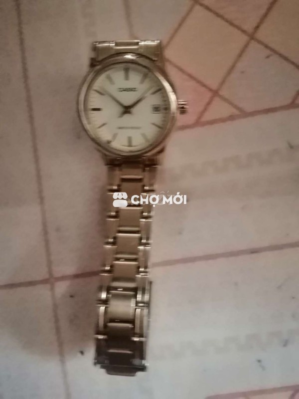 đồng hồ nữ màu vàng cashio, đang chạy bình thường, mình đang đeo kẹt tiền quá mình bán, chị nào có tiền ủng hộ e với, thank.