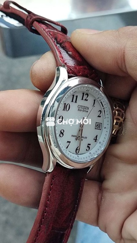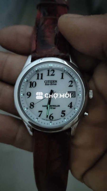 Đồng hồ Citizen Eco-Drive nam, thiết kế sang trọng, mặt trắng ngà cọc số học trò lịch vạn niên kiếng saphia nguyên khối