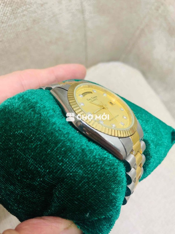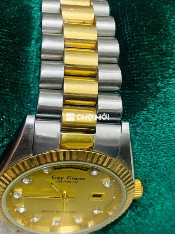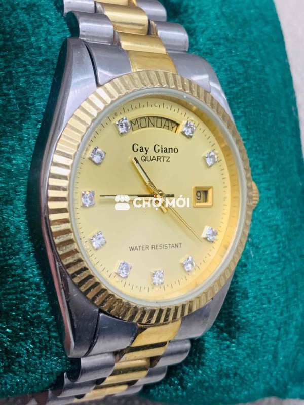 Đồng hồ đeo tay Gay Giano nam, máy pin, màu vàng bạc. - Thiết kế niềng khía, cọc đính kim sáng đẹp. - Dây khóa zin, nước vàng mới. - Có lịch thứ, lịch ngày tiện lợi. -Dáng rô này lên tay cực đẹp,ae đeo thoải mái ko lo bong tróc đâu a,vỏ thép rất bền