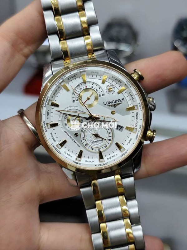 đồng hồ nam longines demi máy nhật size 44 luôn núm 46mm máy nhật, hoạt động tốt, giờ thế giới ngoại hình đẹp như ảnh 850k ship có cọc