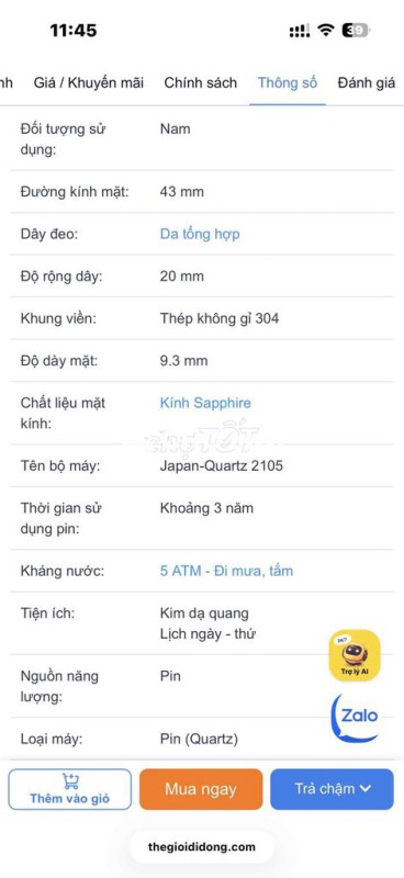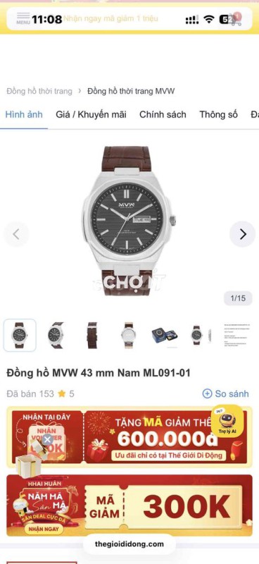 Đồng hồ MVW 43 mm Nam ML091-01 hàng TGDĐ còn mới, zin hết all, kính saphia, chồng nước. Giá bán hiện tại tại TGDĐ là 2tr hơn
