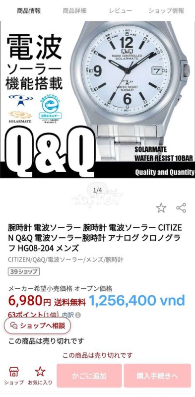 Đồng hồ nội địa Nhật Bản Citizen Q&Q pin năng lượng Mặt Trời