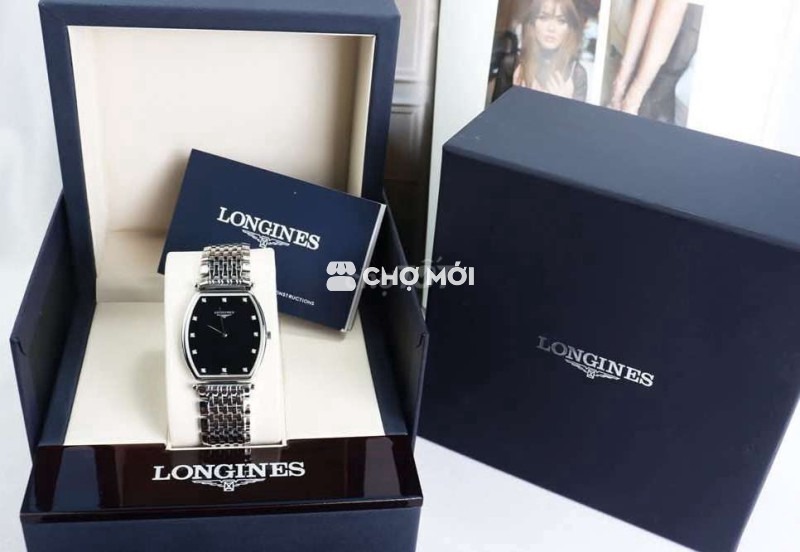Longines La Grande siêu mỏng, mặt đen cọc giờ đính Kim Cương - Fullbox...