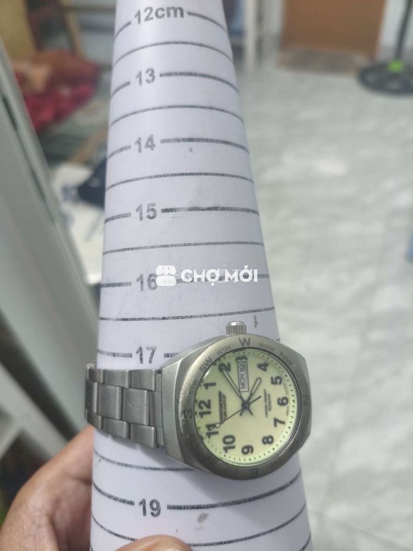 Đồng hồ nội địa Nhật, size 36.5mm không kể núm, 2 lịch, dạ quang màn hình, đáy xoáy chống nước. Pin Zin chạy từ Nhật về VN. Dây tay 17.5cm. Giá 250K