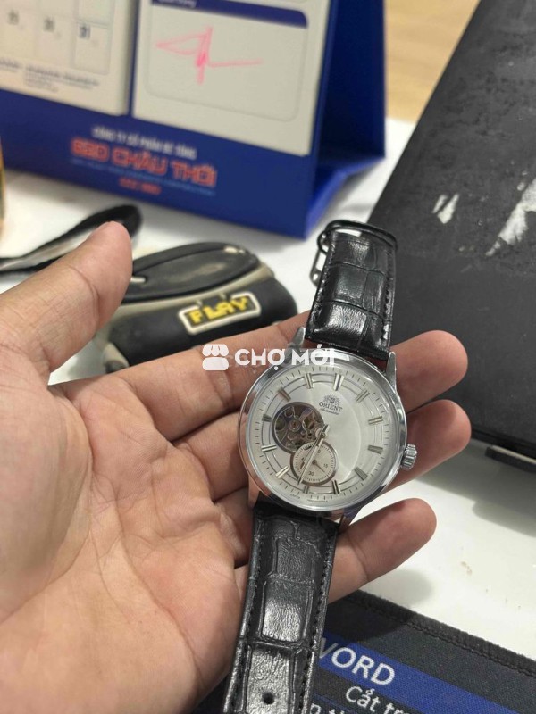 đồng hồ orien bạc dây đen chạy chuẩn.