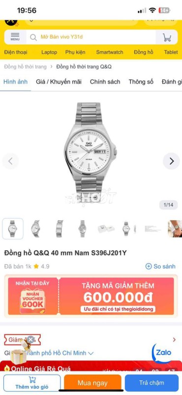 Đồng hồ đeo tay Q&Q S396J201Y dành cho nam, thiết kế đơn giản, dễ phối đồ. - Mua chính hãng TGDD , chống nước 5 ATM . Lúc mua gần 1tr - Chất liệu thép không gỉ bền bỉ. - Kích thước mặt 40 mm. - Màu bạc sang trọng. - Giá 250k + ship