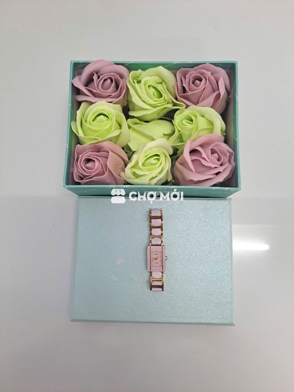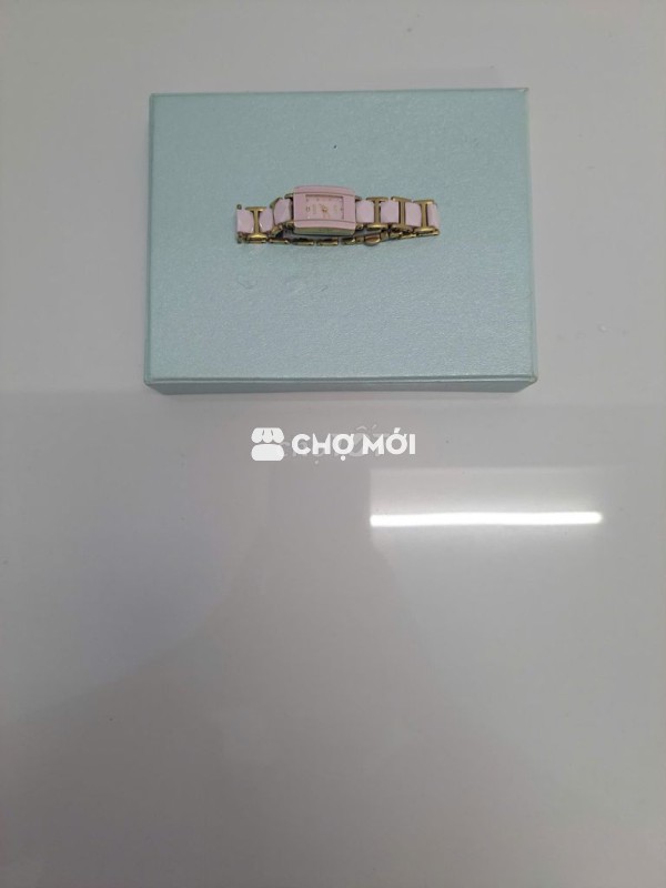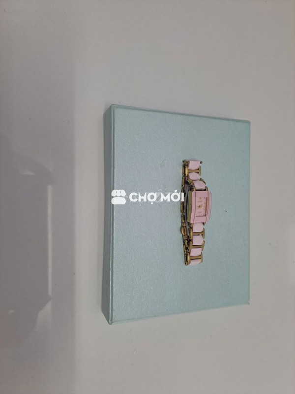 Đồng hồ đeo tay nữ hiệu RADO, màu hồng, chất liệu kim loại bền đẹp. Dây hột đá mạ kim loại viền màu vàng, vừa là đồng hồ, vừa dùng làm lắc tay trang sức.