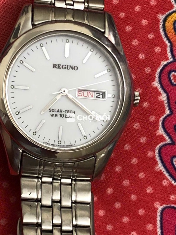 Đồng hồ Reguno Solar-Tech dành cho nam, thiết kế kim loại màu bạc sang trọng.