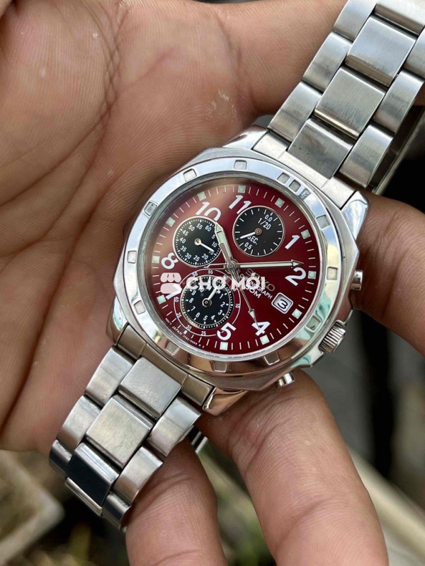 Seiko chronograph 7T92 mặt đỏ cực nổi full thép thiết kế cool ngầu nam tính.