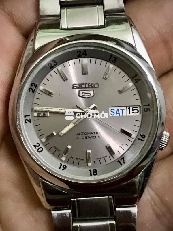 Giá 1tr150k Ck đủ em bao phí ship. SEIKO V Automatic 21 jewels mặt xám tro 2 lịch, Size 37mm, đít lộ cơ, máy cao cấp 21j 7S26A cho máy dòng cao. Kiếng saphia, vỏ dây SS khối đẹp keng. Lịch se tốt. Chạy rất chuẩn, trữ năng 36-40h. Giao dịch trực tiếp tại Tô Ký Q12.