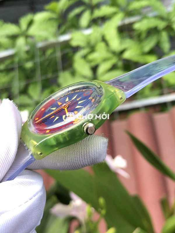 🎁 Dây nhựa trong đã được thay thế, vỏ bằng nhựa lộ đáy, mặt kính có trầy nhẹ không đáng kể. Đặc biệt mặt đồng hồ được thiết kế rất đẹp, mặt nhiều màu sắc phối độc đáo, bộ kim màu dạ quang sáng nổi bật, dậy nhựa trong dẻo dễ sử dụng, tổng thể rất đẹp lạ mắt, form này nam nữ đều đeo được.