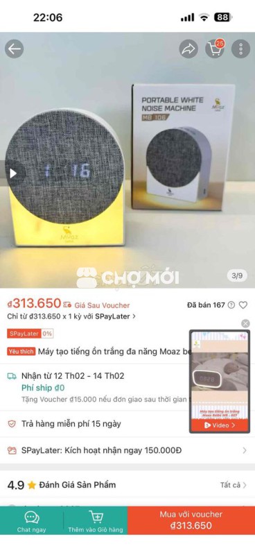 Máy tạo tiếng ồn Moaz Bébé MB 106 màu trắng, thiết kế nhỏ gọn, dễ dàng mang theo. - Giúp bé ngủ ngon, giảm quấy khóc. - Có nhiều âm thanh tự nhiên. - Giá 150 nghìn.