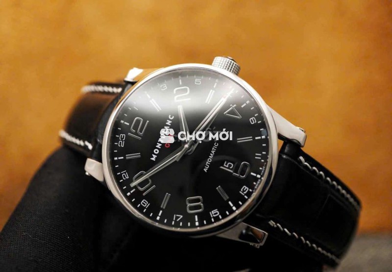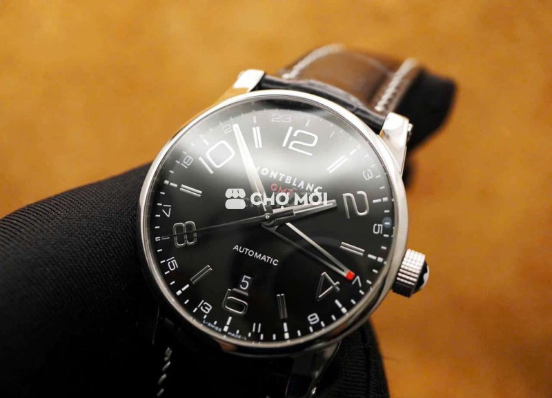 Một chiếc TimeWalker GMT đúng chất Montblanc hiện đại: mặt đen sâu, cọc số Ả Rập lớn dễ đọc, bố cục rõ ràng và chức năng GMT dành cho người thường xuyên di chuyển. Thiết kế cân bằng giữa thể thao – lịch sự, đeo hằng ngày rất “đã”.