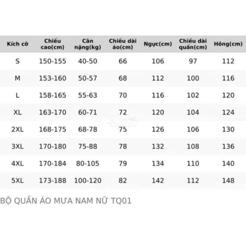 Quần Áo mưa cho người lớn sz XL