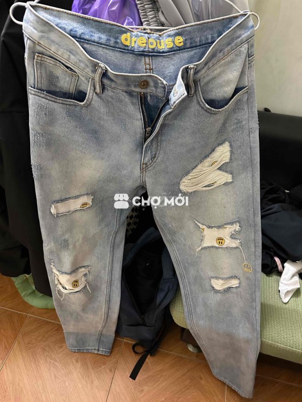 Quần jean nam màu xanh nhạt, chất liệu vải bò bền đẹp. - Thiết kế rách cá tính, phong cách. - Dễ phối đồ, phù hợp nhiều dịp. Hãng Drew 65kg đổ lên